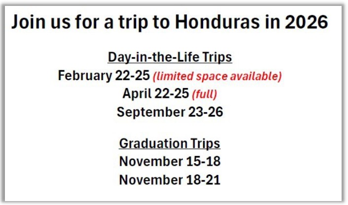 - We hope that you will consider traveling to Honduras with us.